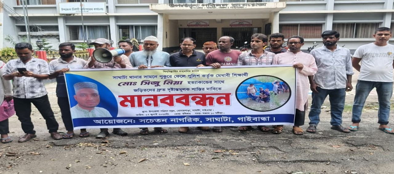 সিজু হত্যার বিচারের দাবিতে সাঘাটায় মানববন্ধন