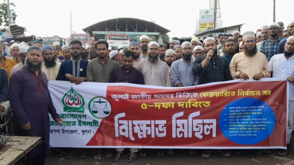 রুপসায় জামায়াতে ইসলামী নির্বাচনসহ পাঁচ দফা দাবিতে বিক্ষোভ মিছিল ও সমাবেশ প্রতিনিধি: মোহাম্মদ আব্দুল্লাহ, খুলনা-রুপসা প্রতিনিধি। বাংলাদেশ জামায়াতে ইসলামী রুপসা উপজেলায় কেন্দ্রীয় ঘোষিত কর্মসূচির অংশ হিসেবে নৈহাটি ও টিএসবি ইউনিয়নের