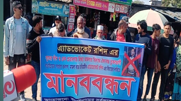 নাটোরের বড়াইগ্রামে সুদ ও চেক প্রতারণার অভিযোগে আইনজীবীর বিরুদ্ধে মানববন্ধন